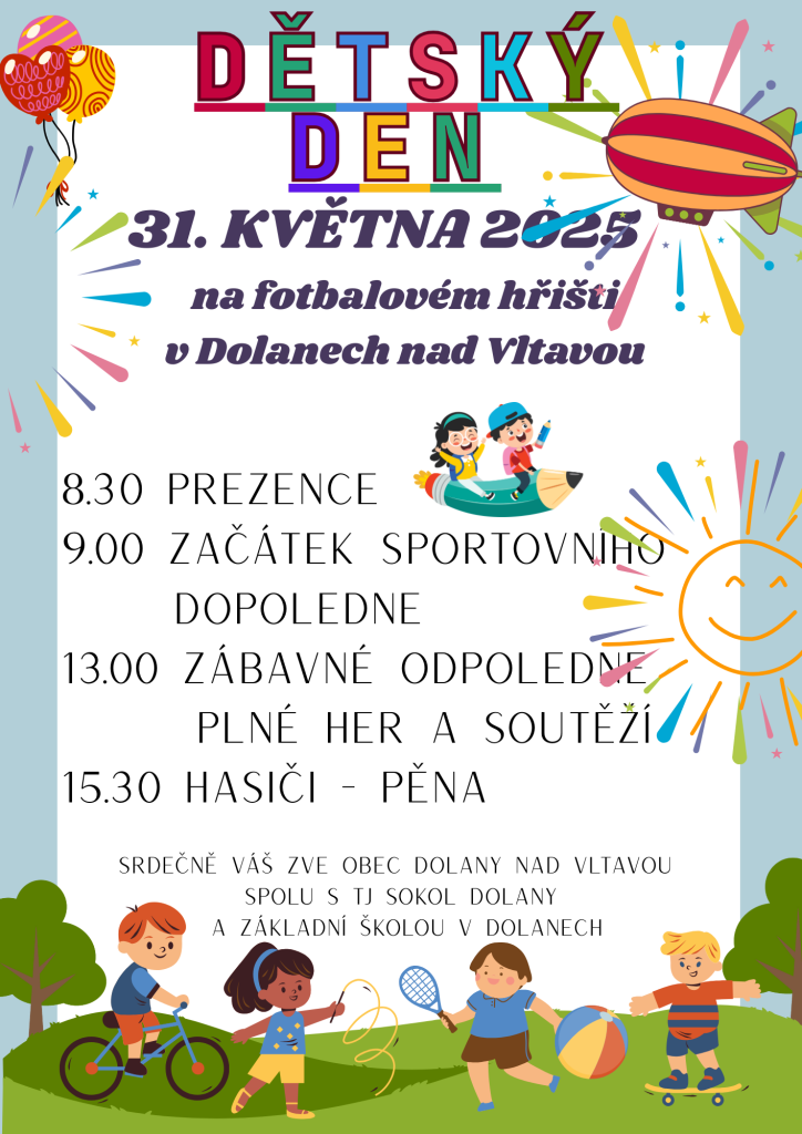 Dětský den 31.5.2025 - hřiště TJ Sokol Dolany, den plný her a zábavy!