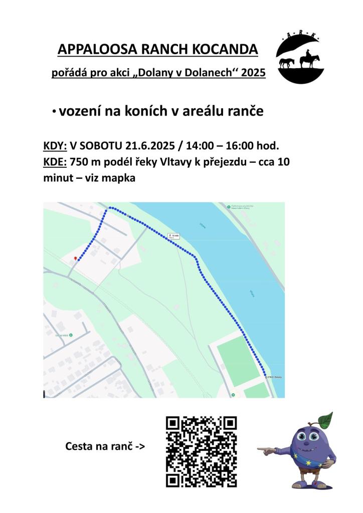 V rámci akce Dolany v Dolanech 2025 je připravena výstava Martina Patřičného na OÚ Dolany, prohlídka Uhelného mlýna s průvodcem (Libčice nad Vltavou) a vození na koních na Appaloosa Ranch Kocanda.