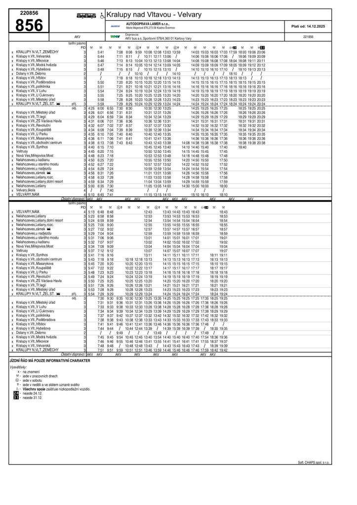 Autobusová linka 856, 857 - zastávka Dolany n.Vlt.,Debrno