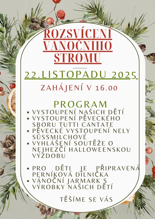 ROZSVÍCENÍ VÁNOČNÍHO STROMU – 22. 11. 2025